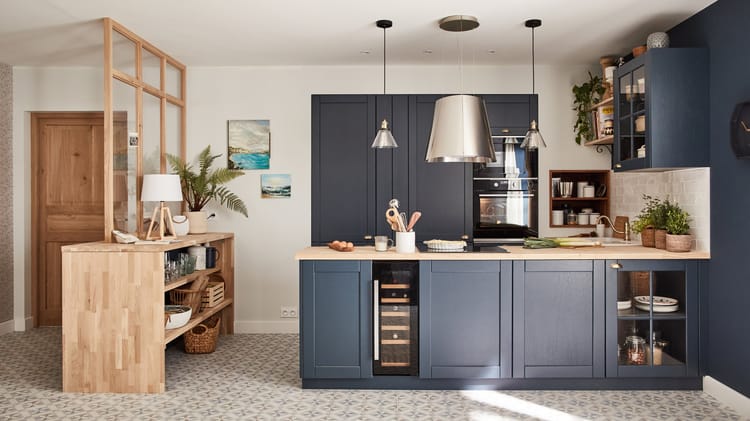 Façade de tiroir de cuisine Chicago bleu marine mat H.38.1 x l.59.7 cm
