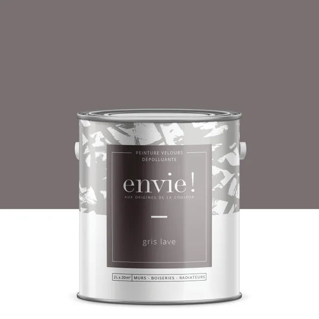 Donnez un air frais à vos murs, boiseries et radiateurs grâce à la peinture dépolluante Envie velours en gris lavé. Sa formulation de haute qualité offre un rendu subtil et tendance inspiré de la nature. Elle capte les substances nocives pour la santé et bénéficie d'un Ecolabel garantissant un faible taux de COV. Fabriquée en France.