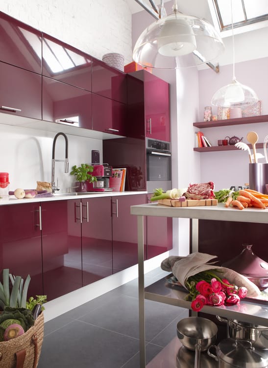 Porte de cuisine Sevilla aubergine brillant H.76.8 x l.39.7 cm